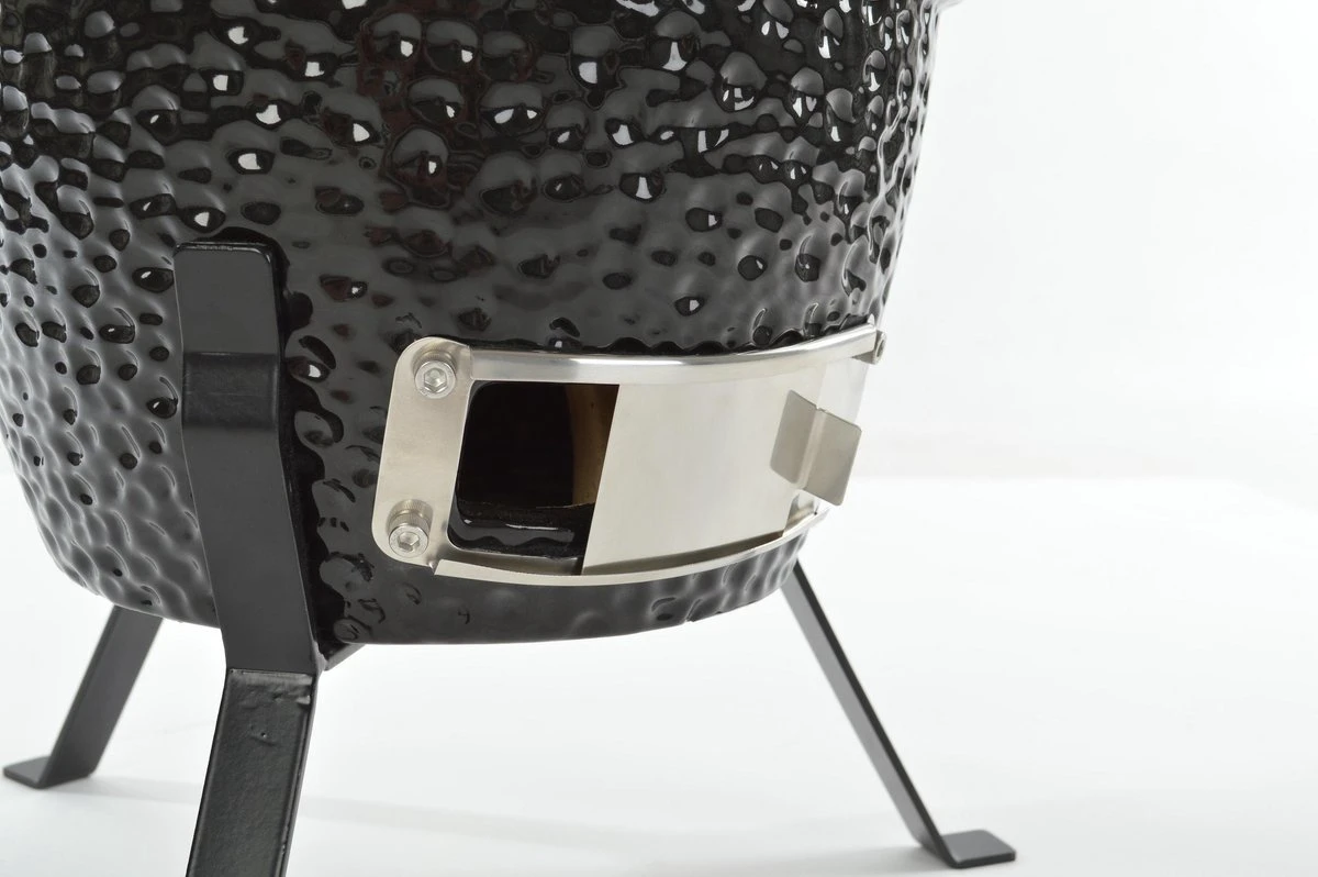Deze barbecue is gebaseerd op een tradtitionele Japanse aardewerken oven. De resultaten die van deze barbecue komen zijn om met de vingers af te likken. De mini Kamado Grill is een uiterst veelzijdige houtskool grill waarmee je kan garen, grilen en roken. Dankzij zijn comacte formaat is deze kamado grill eenvoudig mee te nemen op vakantie, naar feestjes of andere gelegenheden. De heerlijkste gerechten in een handomdraai met de Mini Kamado Grill. Deze compacte grill heeft een leuk design met een groot grill oppervlak. Het grilloppervlak van de mini kamado grill is 27cm. Geschikt voor eten tot wel 4 personen.
