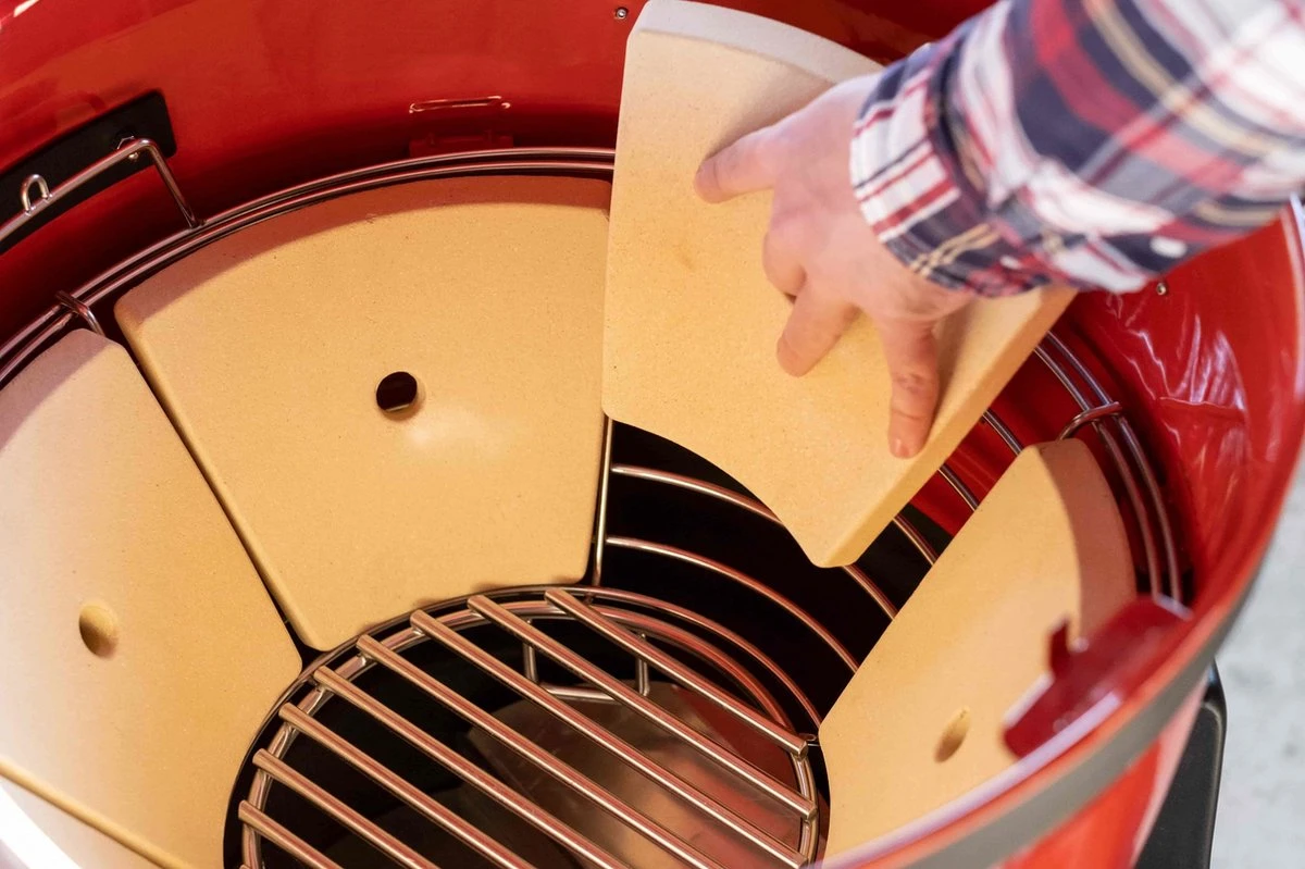 - Efficiënte keramische vuurbak zorgt voor langere kooktijden met minder verbruik van houtskool