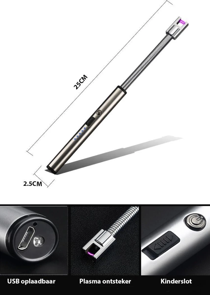 ✓ Veilig – De aansteker is voorzien van een kinderslot, schuif eerst de vergrendeling omhoog voordat de aansteker werkt. Daarnaast schakeld de aansteker zichtzelf na 10 seconden uit.